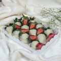 Набор из клубники в шоколаде, свежей клубники и голубики в белой упаковке формы сердца