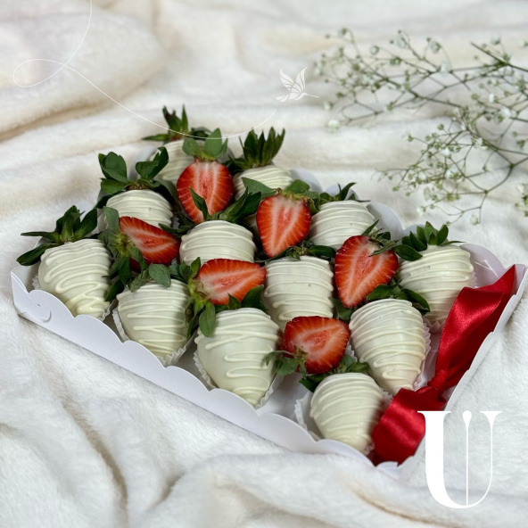 Набор из украшенной клубники в молочном и белом шоколаде 16 шт