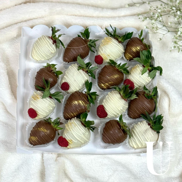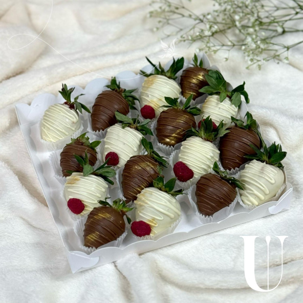Набор из клубники в молочном шоколаде украшенной голубикой