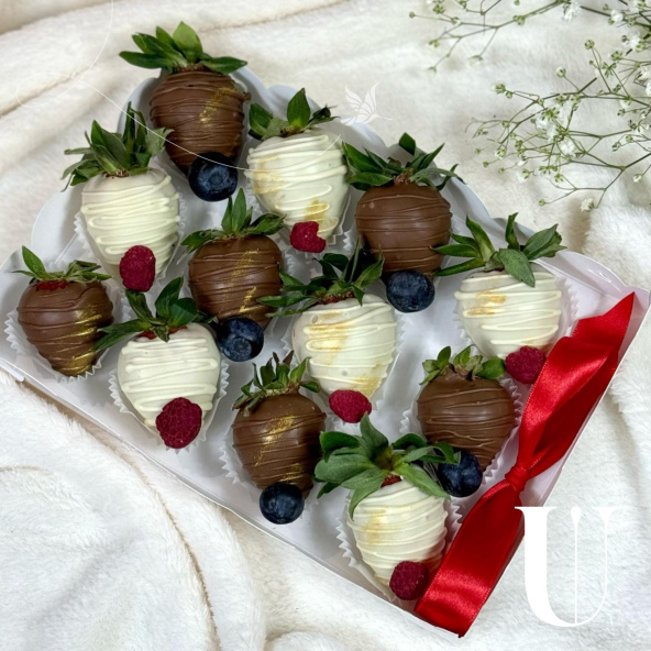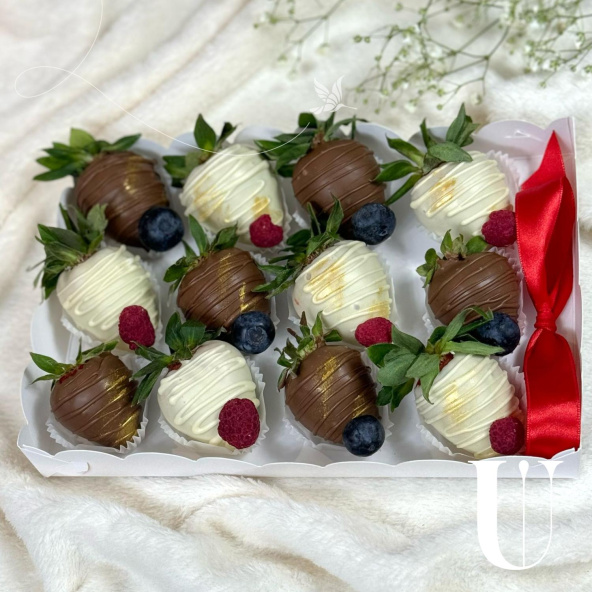 Набор из украшенной клубники в молочном и белом шоколаде 16 шт