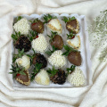 Набор из клубники в шоколаде, свежей клубники и голубики в белой упаковке