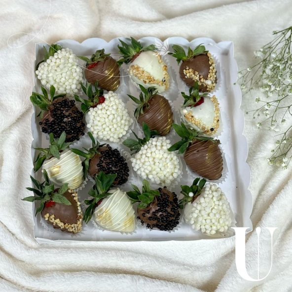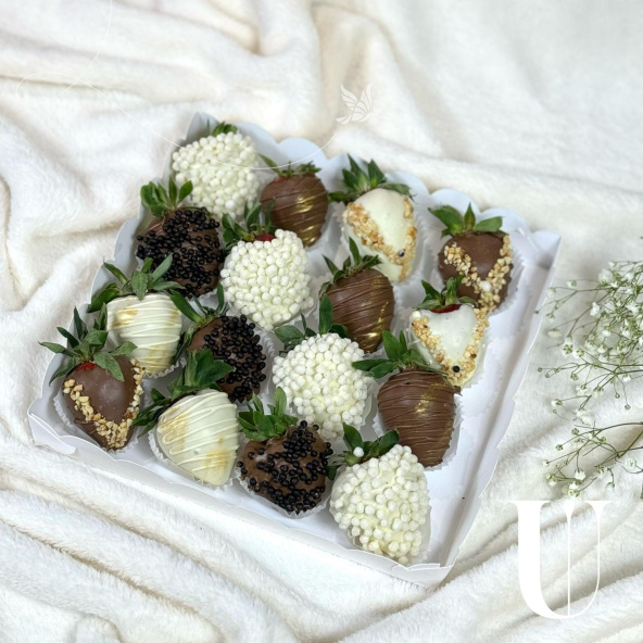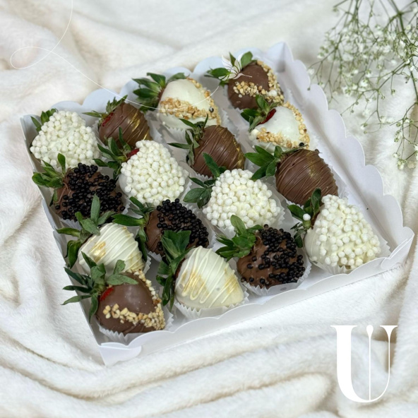 Набор из клубники в шоколаде украшенной лесными ягодами