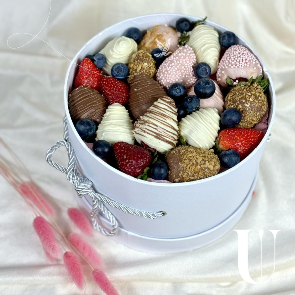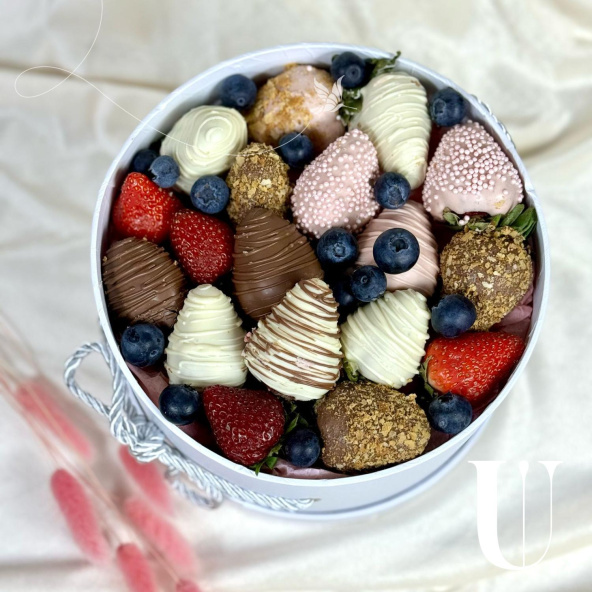 Набор из украшенной клубники в молочном и белом шоколаде 16 шт