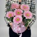 Композиция из 9 розовых гербер в шляпной коробке