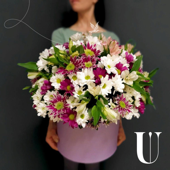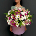 Букет из красных и розовых кустовых роз в коробке формы сердца