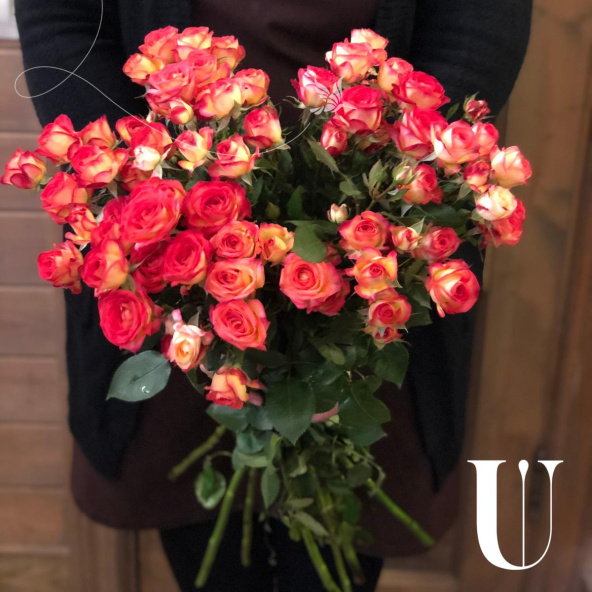 Монобукет из 3 вывернутых роз в дизайнерской упаковке