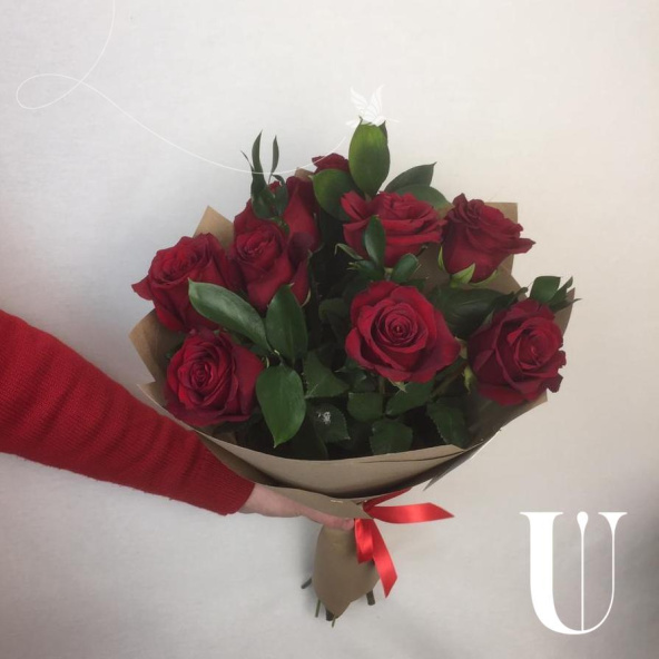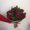 Монобукет из 3 красных вывернутых роз в белой упаковке