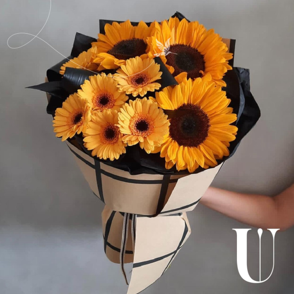 Стильный букет из белой кустовой хризантемы в дизайнерской упаковке