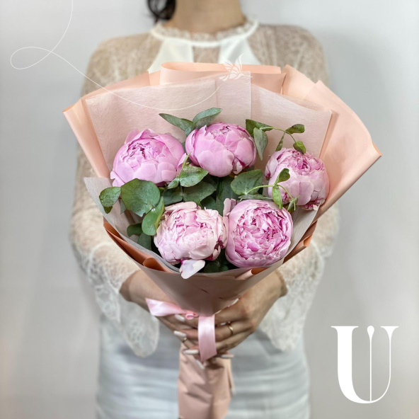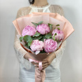 Букет из белых вывернутых роз в дизайнерской упаковке