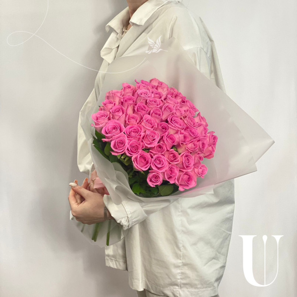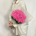 Монобукет из розовых кустовых пионовидных роз в матовой упаковке