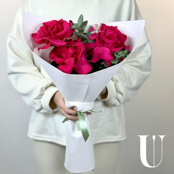 Монобукет из 3 вывернутых роз в дизайнерской упаковке