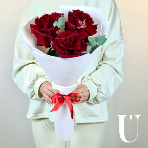 Монобукет из 3 вывернутых роз в дизайнерской упаковке