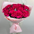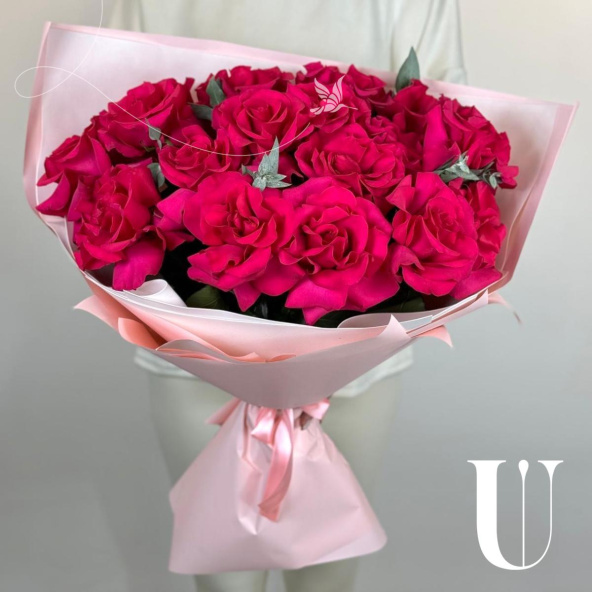 Монобукет из 19 ярких вывернутых роз в дизайнерской упаковке