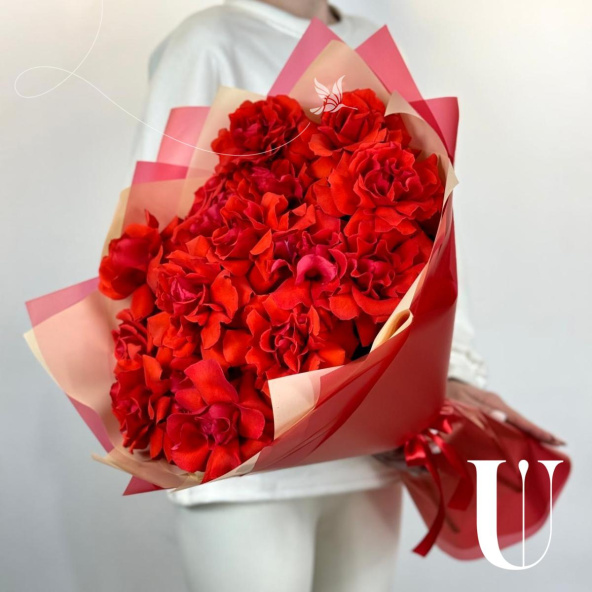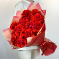 Монобукет из 5 пионов сорта Сара Бернар в дизайнерской упаковке