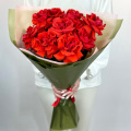 Монобукет из розовых кустовых пионовидных роз в матовой упаковке