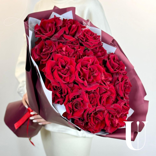 Молнобукет из 19 розовых вывернутых роз в дизайнерской упаковке