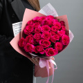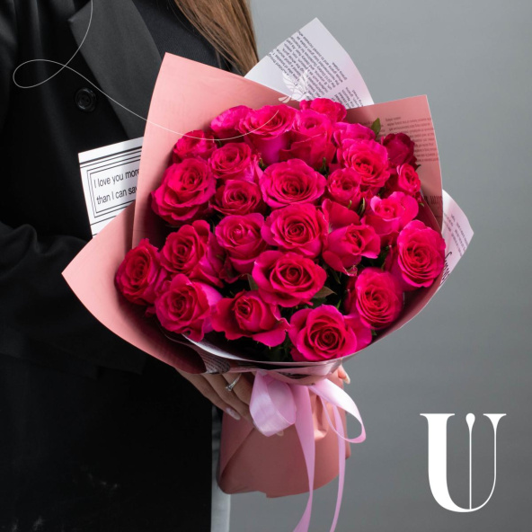 Монобукет из 11 розовых роз в светло-розовой упаковке