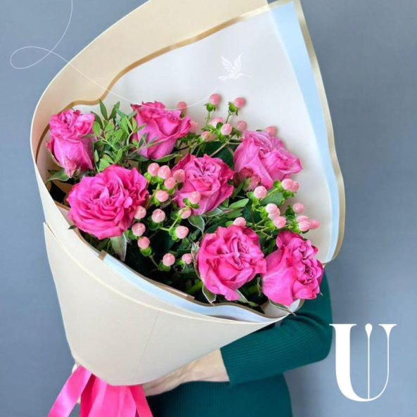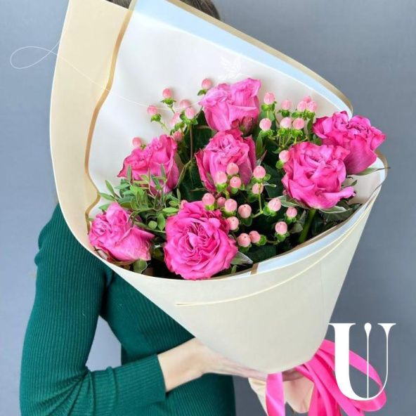 Монобукет из роз сорта Аква в дизайнерской упаковке