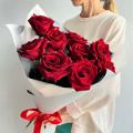 Монобукет из 3 красных вывернутых роз в белой упаковке
