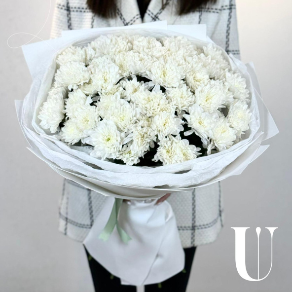 Стильный букет из красных роз в белой дизайнерской упаковке