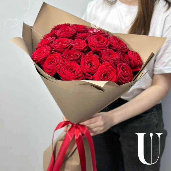 Монобукет из 11 вывернутых роз в дизайнерской упаковке