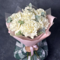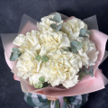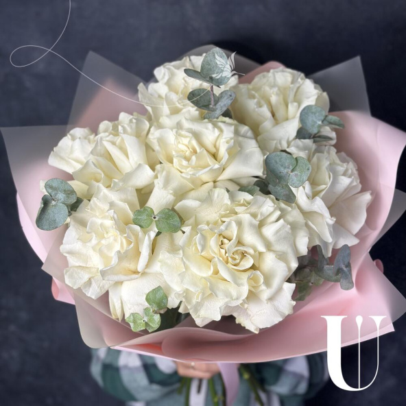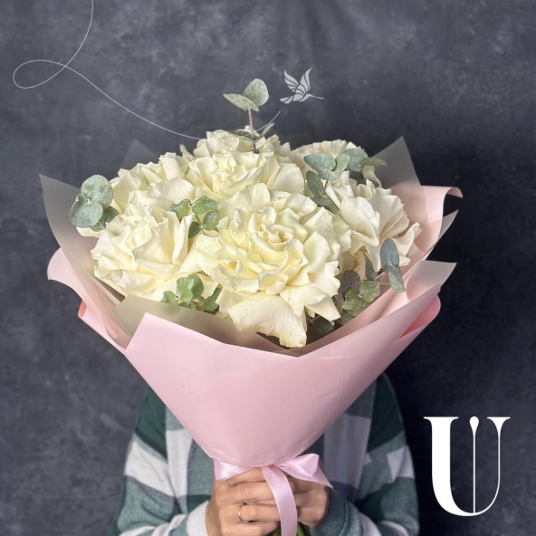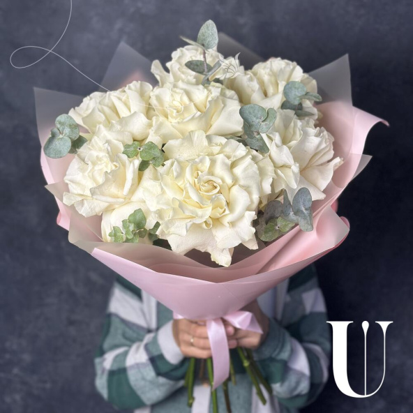 Стильный букет из красных роз в белой дизайнерской упаковке
