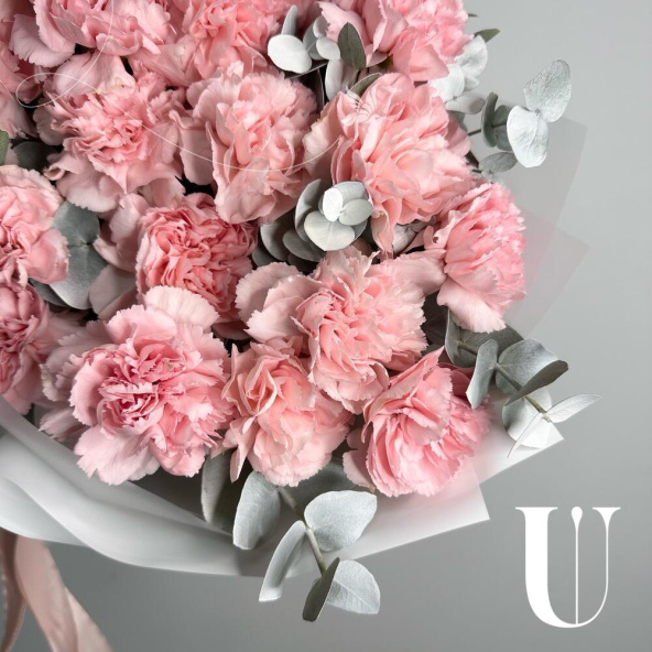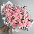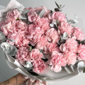 Монобукет из 5 пионов сорта Сара Бернар в дизайнерской упаковке
