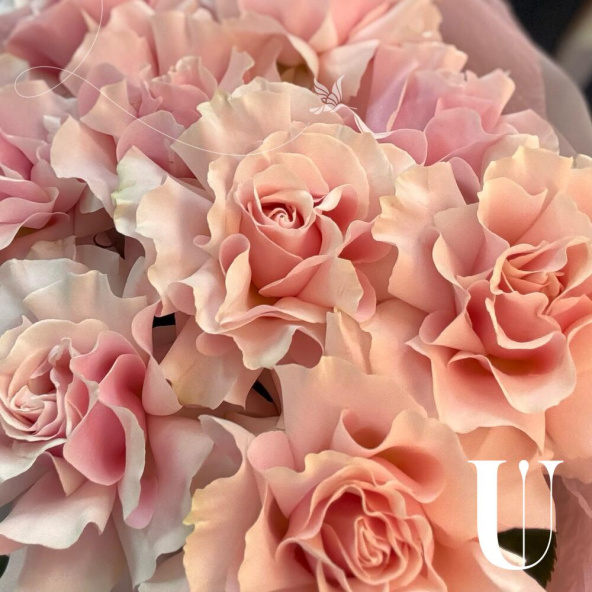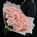 Монобукет из розовых кустовых пионовидных роз в матовой упаковке