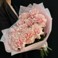 Монобукет из 15 розовых гвоздик в упаковке