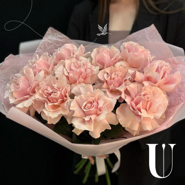 Монобукет из 11 вывернутых роз в дизайнерской упаковке