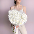 Монобукет из белых роз и роз сорта Леди Раффаэла в сиреневой упаковке