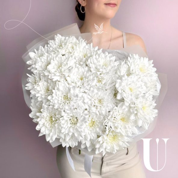 Стильный букет из красных роз в белой дизайнерской упаковке