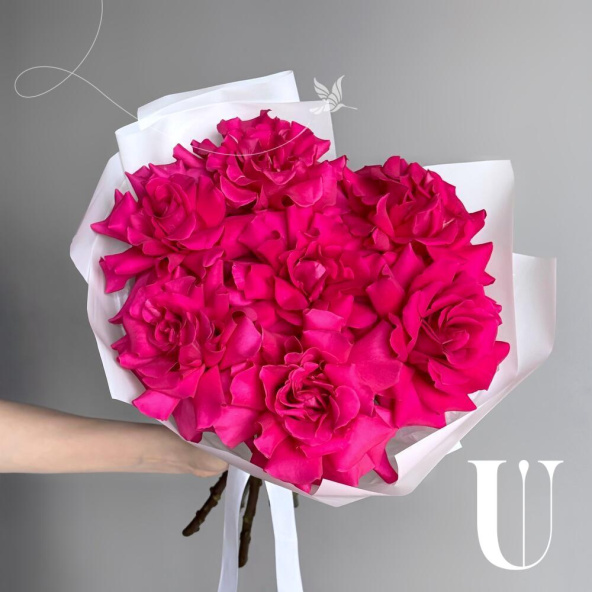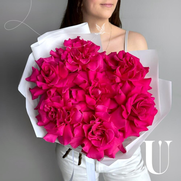 Стильный букет из красных роз в белой дизайнерской упаковке
