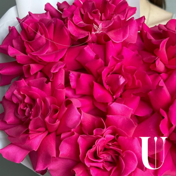 Монобукет из 5 красных роз в дизайнерской упаковке