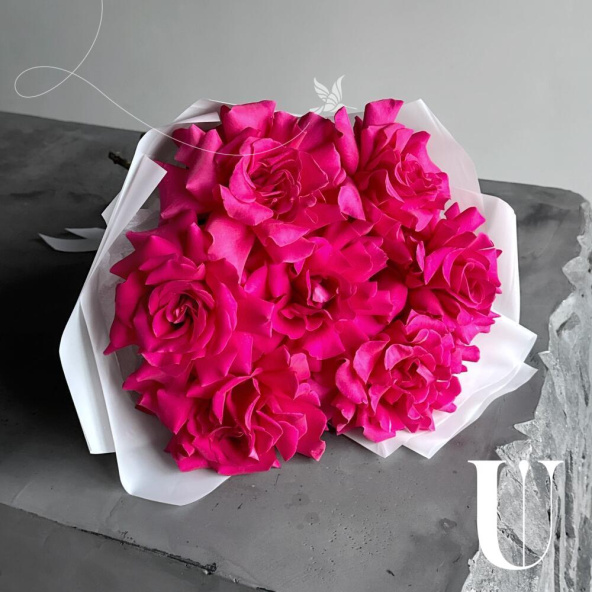 Монобукет из 9 красных роз 60 см в дизайнерской упаковке