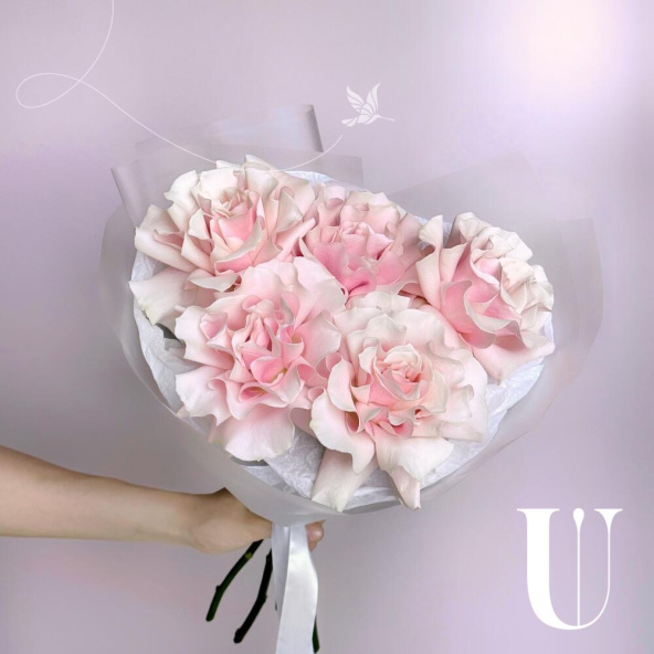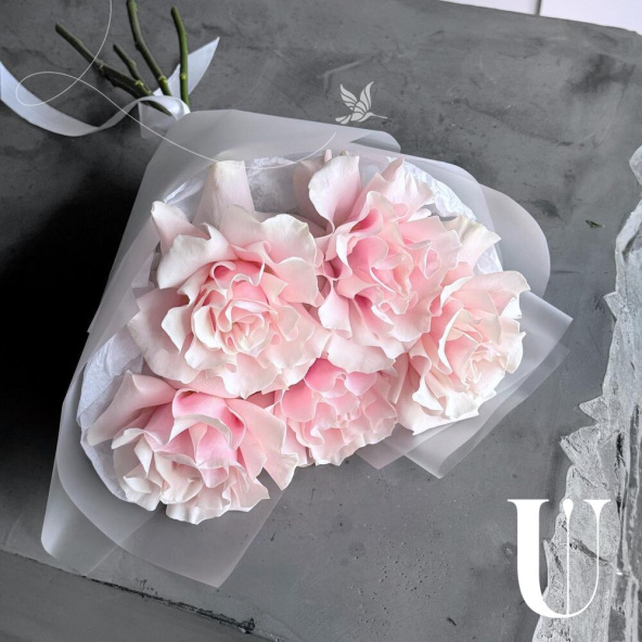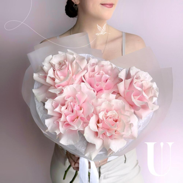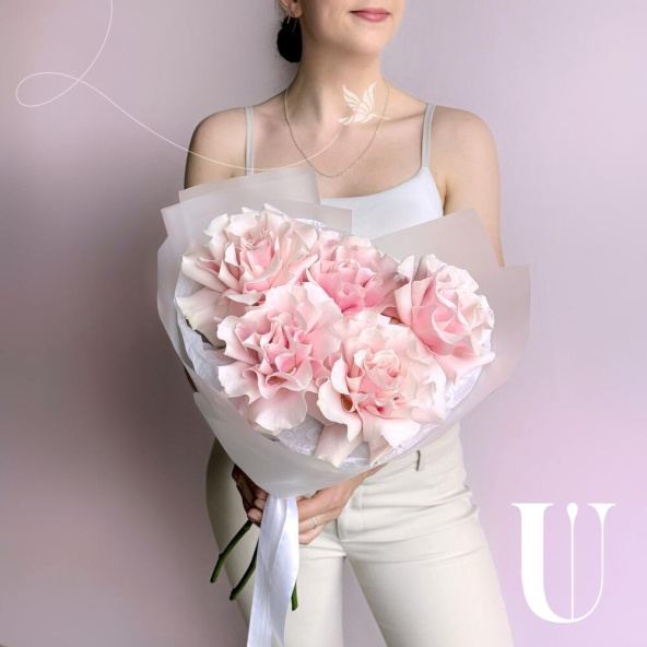 Монобукет из 5 красных роз в дизайнерской упаковке