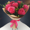 Букет "Фрида" из розовых роз с зеленью фисташки в крафте с атласной лентой - это стильный и изысканный подарок, который подойдет для любого повода. Букет включает в себя 7 розовых Эквадорских роз - высококачественных цветов, которые известны своими насыщенными оттенками и приятным ароматом, который долго будет радовать вас и ваших близких. Зелень фисташки добавляет свежести и завершает нежный образ композиции