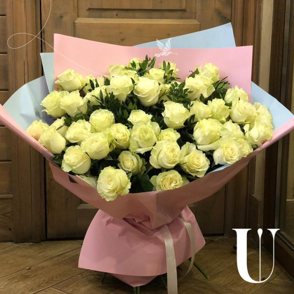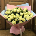 Молнобукет из 19 розовых вывернутых роз в дизайнерской упаковке