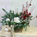 Композиция из нобилиса и новогоднего декора в кашпо