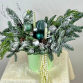 Композиция из нобилиса, лагуруса и новогоднего декора в кашпо