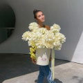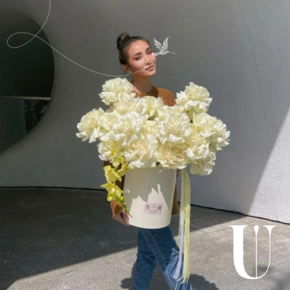 Композиция из 25 вывернутых желтых роз Эквадор в шляпной коробке